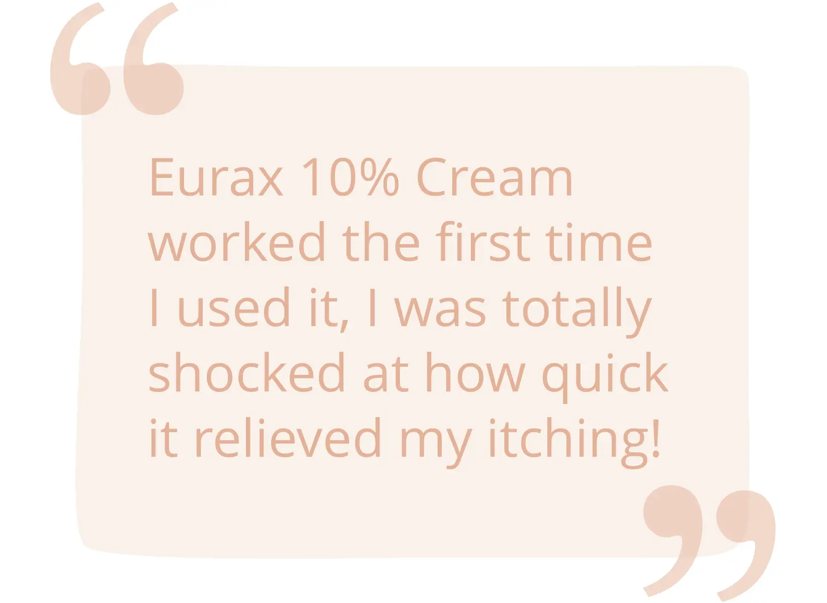 Eurax 10% Cream worked the first time I used it, I was totally shocked at how quick it relieved my itching! I was delighted and relieved, after all those years of suffering from eczema, Eurax 10% Cream helped me get over the itching stage of the condition which then resulted in me not scratching anymore.